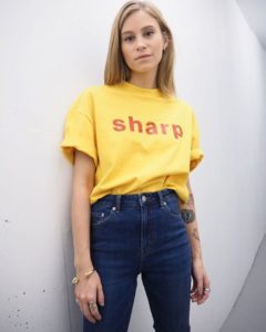 3. Możemy zamienić czarne, gładkie topy na czarne topy z nadrukiem, wzorem lub napisem, przez co przełamiemy ten kolor i nieco go złagodzimy.