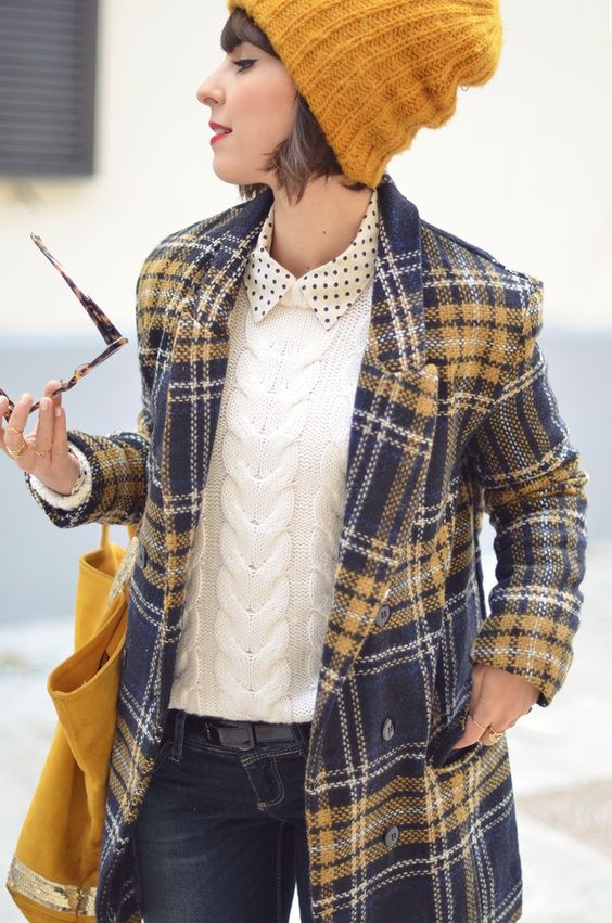 • wzór w pepitkę lub w kratę na marynarkach i płaszczach;