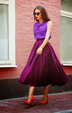 Ciemny fiolet dobrze współgra z pomarańczowym oraz żółtym, beżowym, purpurowym, a nawet jaskrawą czerwienią.