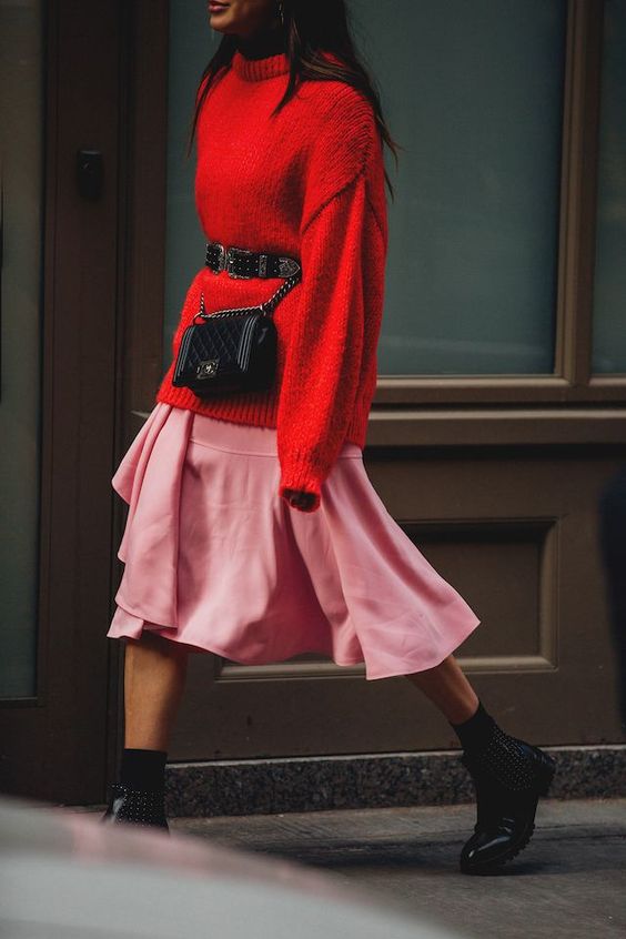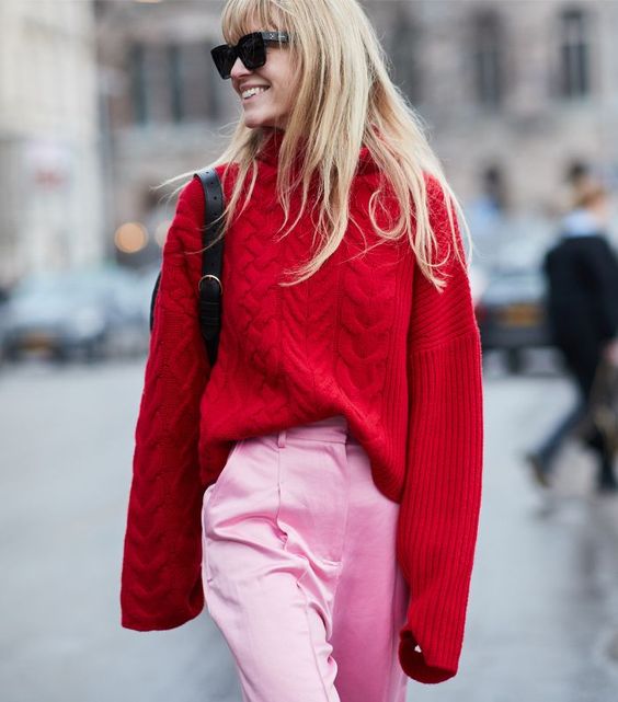 Do tego połączenie intensywnej czerwieni z pudrowym różem albo błękitem.