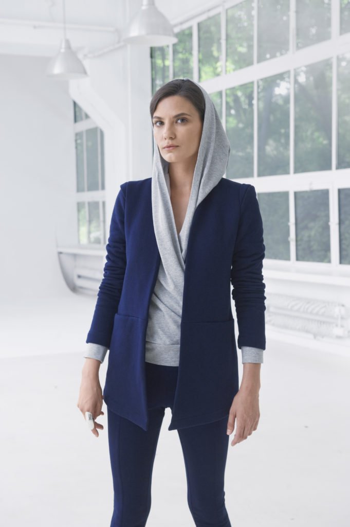 2. Wybieramy wygodną dzianinową opcję np. w postaci marynarki, jaką proponują chociażby Risk made in warsaw (sprawdźcie ich marynarki z dresowej bawełny, przykłady na zdjęciach). W taki sposób podnosimy stopień elegancji.
